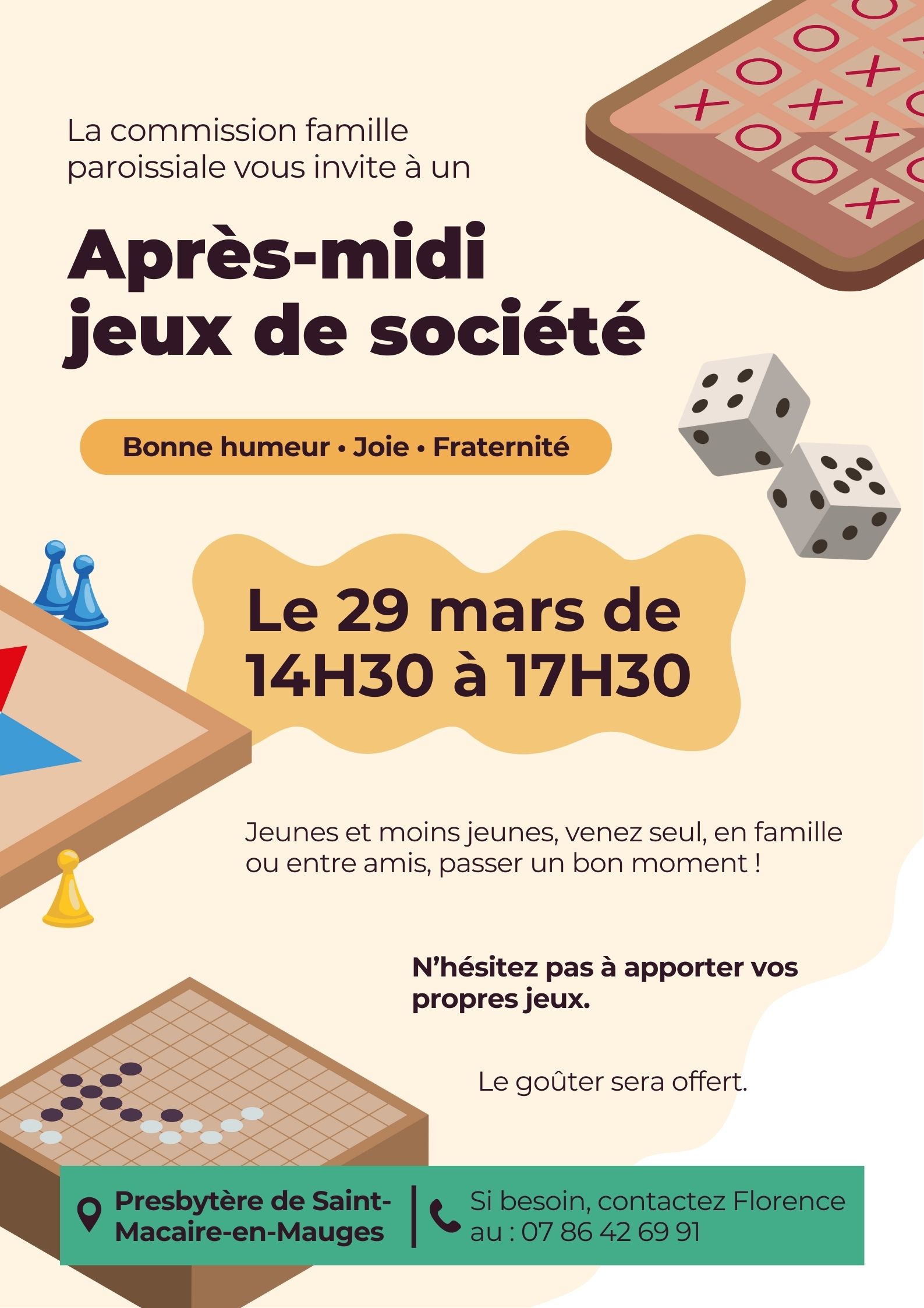 Venez partager un temps convivial autour de jeux de société. Ouvert à tous, que vous soyez seul, en famille, entre amis, jeunes et moins jeunes ... N'hésitez pas à apporter vos propres jeux. Le goûter sera offert.