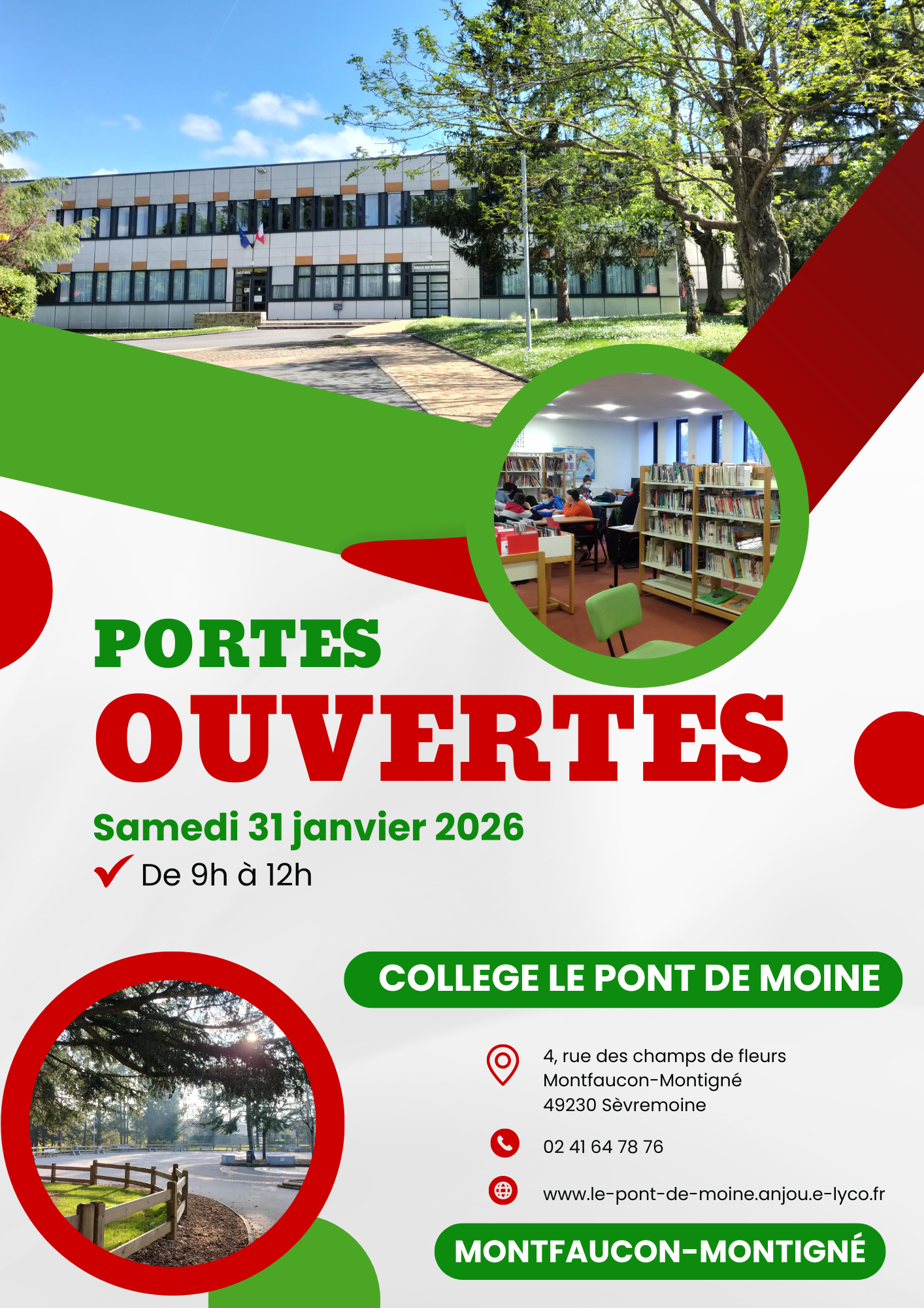 Le collège Le Pont de Moine organise sa porte ouverte le samedi 31 janvier 2026 de 9h à 12h à Montfaucon-Montigné.